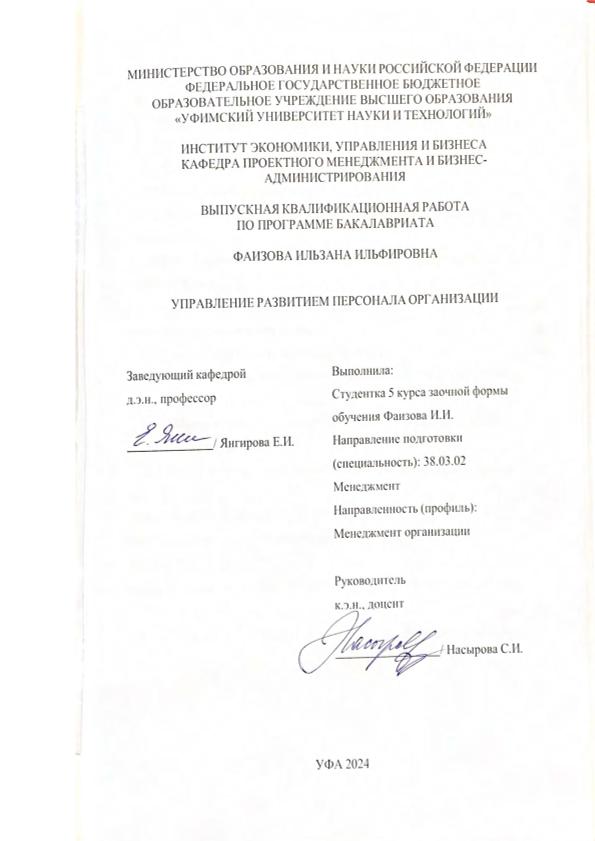 ВКР; бакалавриат; управление персоналом; развитие персонала; обучение персонала