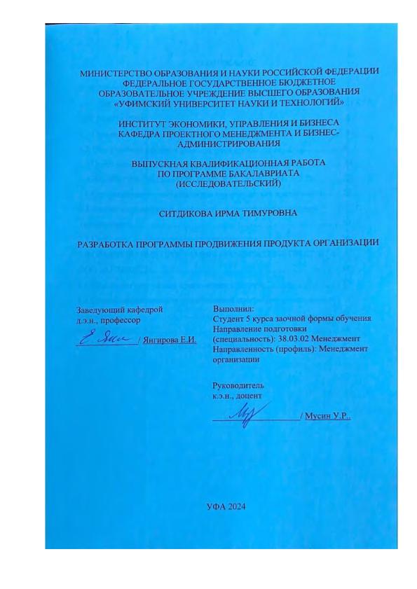 Уфимский университет науки и технологий (УУНиТ). Институт экономики, управления и бизнеса. Кафедра проектного менеджмента и бизнес-администрирования