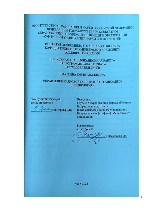 ВКР; бакалавриат; управление персоналом; кадровая политика; методы управления