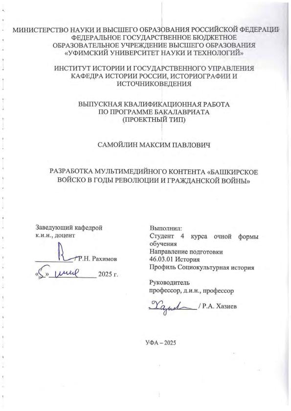 ВКР; бакалавриат; мультимедийный тематико-исторический региональный контент; Гражданская война; Башкирское войско; Красная Армия; Петроград