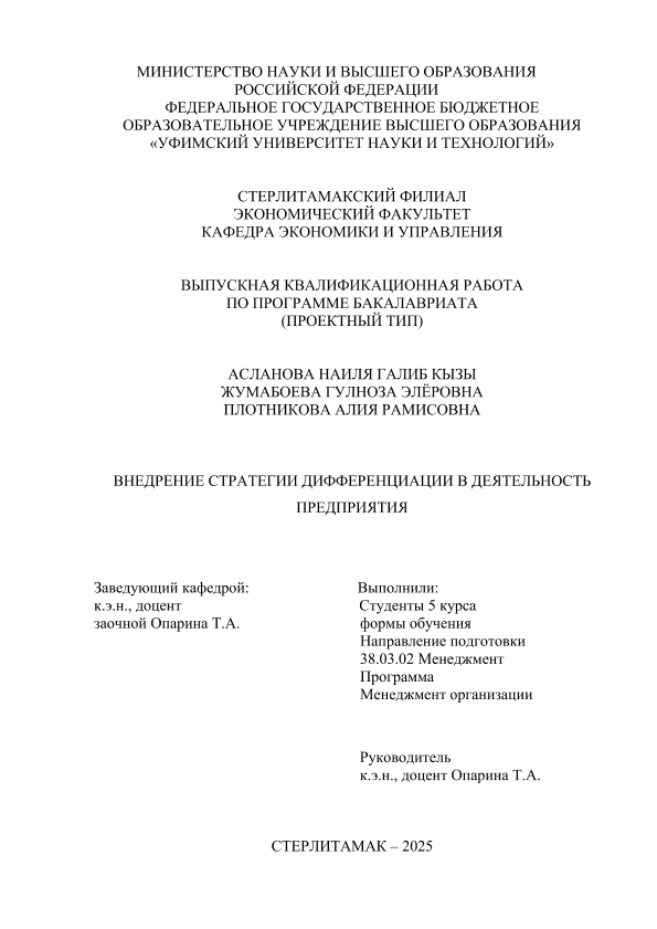 Уфимский университет науки и технологий. Стерлитамакский филиал. Экономический факультет. Кафедра экономики и управления
