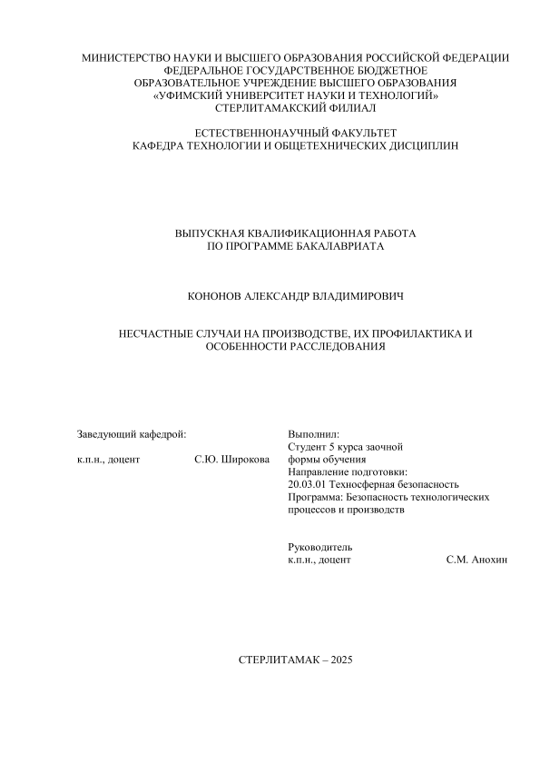 Охрана труда; бакалавриат; ВКР; несчастные случаи на производстве