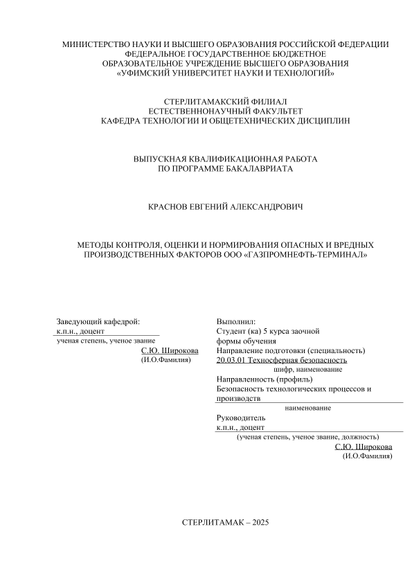 Охрана труда; бакалавриат; ВКР; вредные производственные факторы
