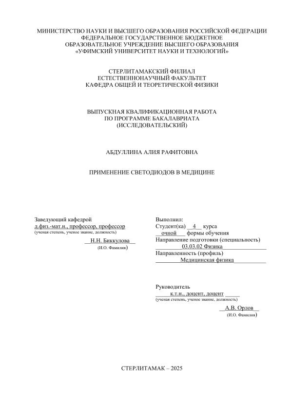 Физика; бакалавриат; ВКР; медицинская физика; медицинские приборы; светодиоды