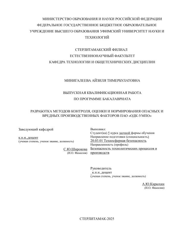 Охрана труда; бакалавриат; ВКР; опасные и вредные производственные факторы