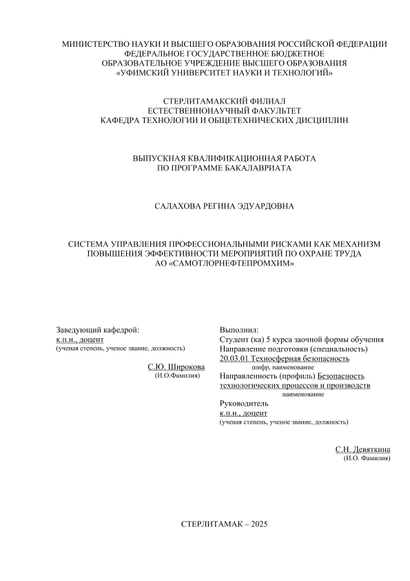 Охрана труда; бакалавриат; ВКР; профессиональные риски