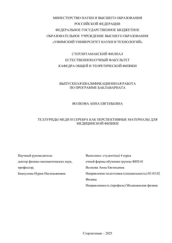 Физика; бакалавриат; ВКР; медицинская физика; теллуриды меди и серебра