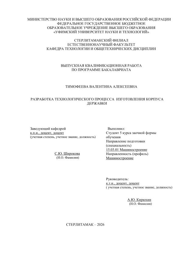 Техника; бакалавриат; ВКР; изготовление корпуса державки
