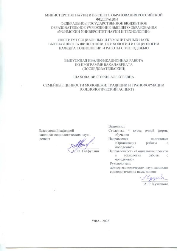 Уфимский университет науки и технологий (УУНиТ). Институт гуманитарных и социальных наук. Кафедра социологии и работы с молодежью