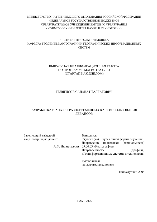 Organization: Уфимский университет науки и технологий. Институт природы и человека. Кафедра геодезии, картографии и географических информационных систем