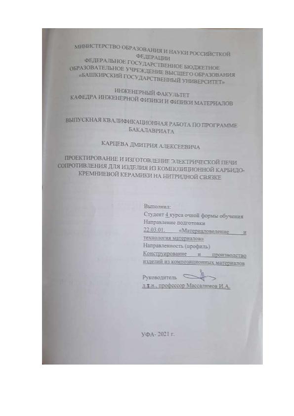 Техника — Материаловедение; ВКР; бакалавриат; карбидкремниевая керамика; композиционные материалы; нитридная связка; керамические технологии; электрические печи сопротивления