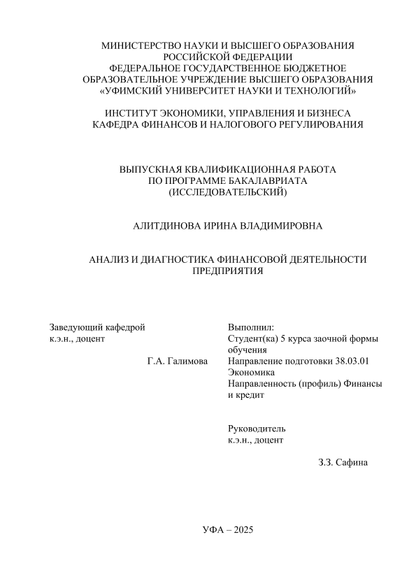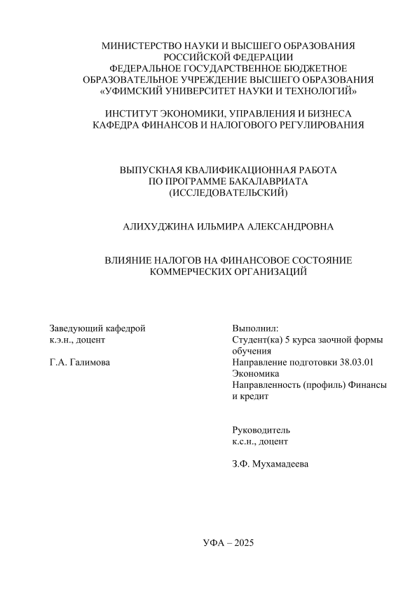 Уфимский университет науки и технологий. Институт экономики, управления и бизнеса. Кафедра финансов и налогового регулирования