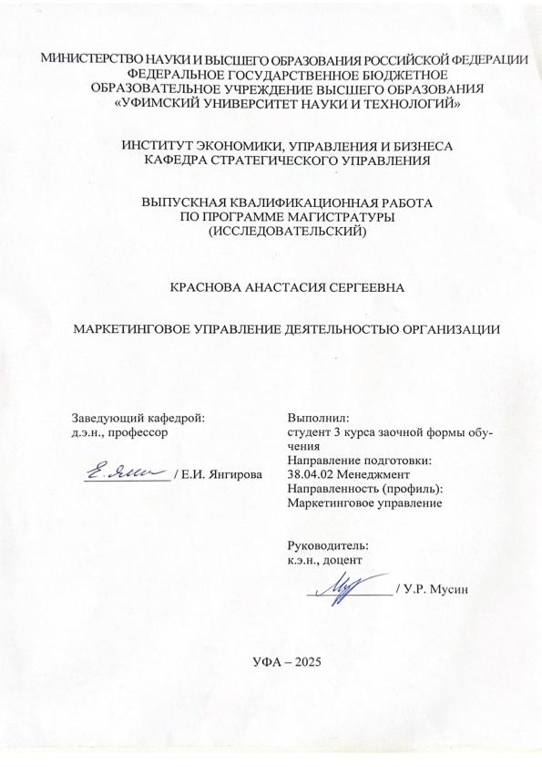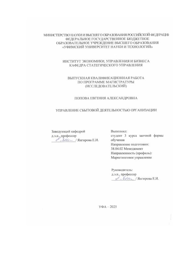 Уфимский университет науки и технологий. Институт экономики, управления и бизнеса. Кафедра стратегического управления