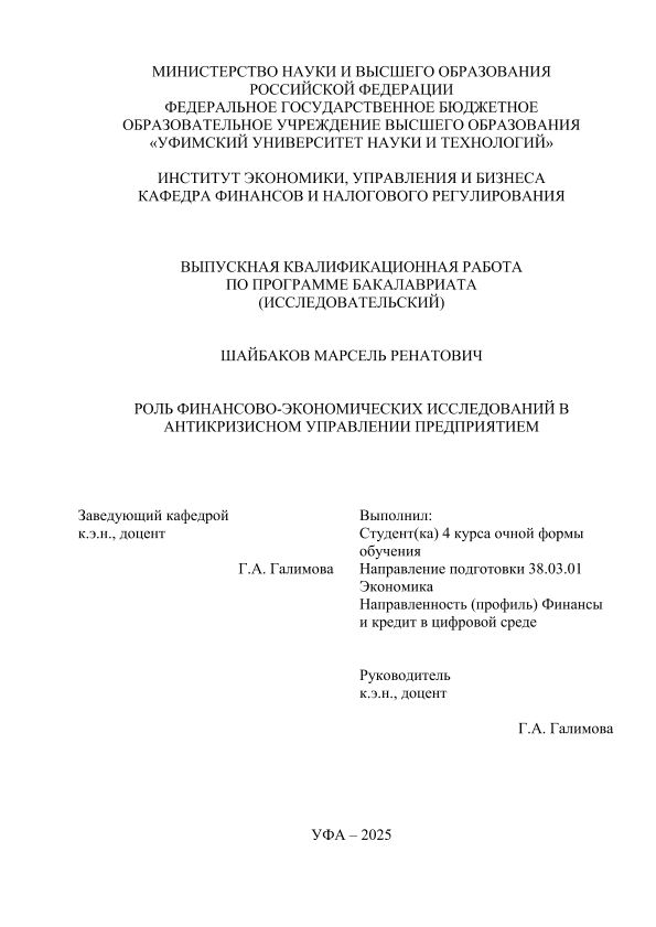 ВКР; бакалавриат; виды кризисов; финансово-экономические исследования; актикризисное управление; экономическая деятельность предприятия