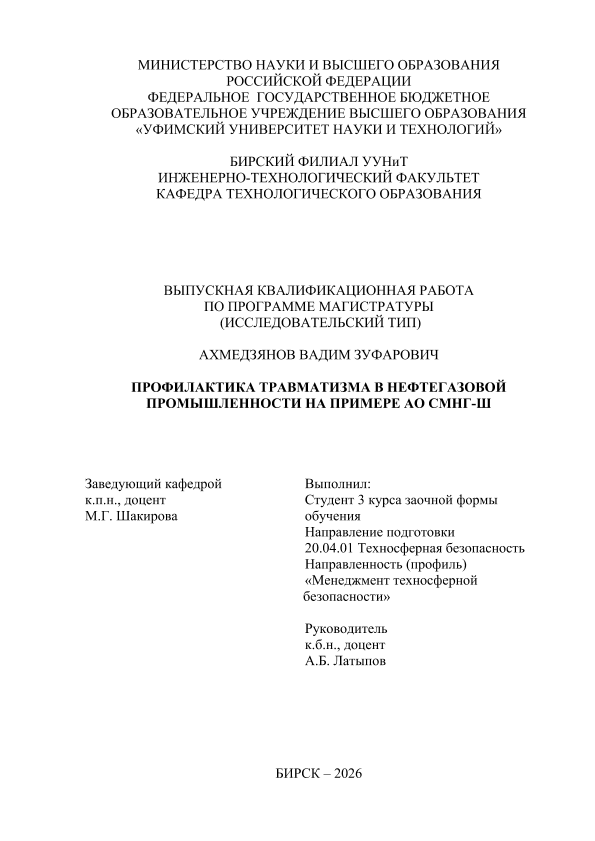 Экономика — Экономика труда; магистратура; ВКР; нефтегазовая промышленность; травматизм; охрана труда; безопасность труда