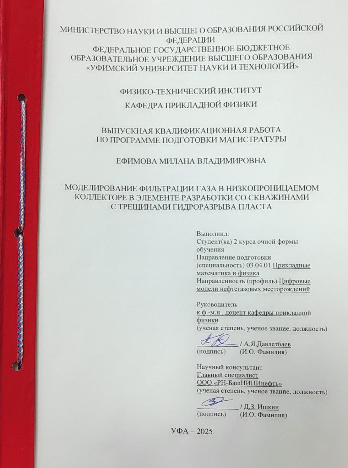ВКР; магистратура; трещины гидроразрыва пласта; фильтрация газа; газовые скважины; численное моделирование; пластовое давление