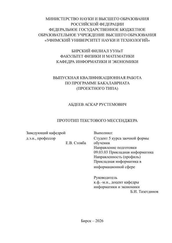 Вычислительная техника — Прикладные информационные (компьютерные) технологии в целом; ВКР; бакалавриат; текстовый мессенджер; информационные системы; программирование; информационные технологии