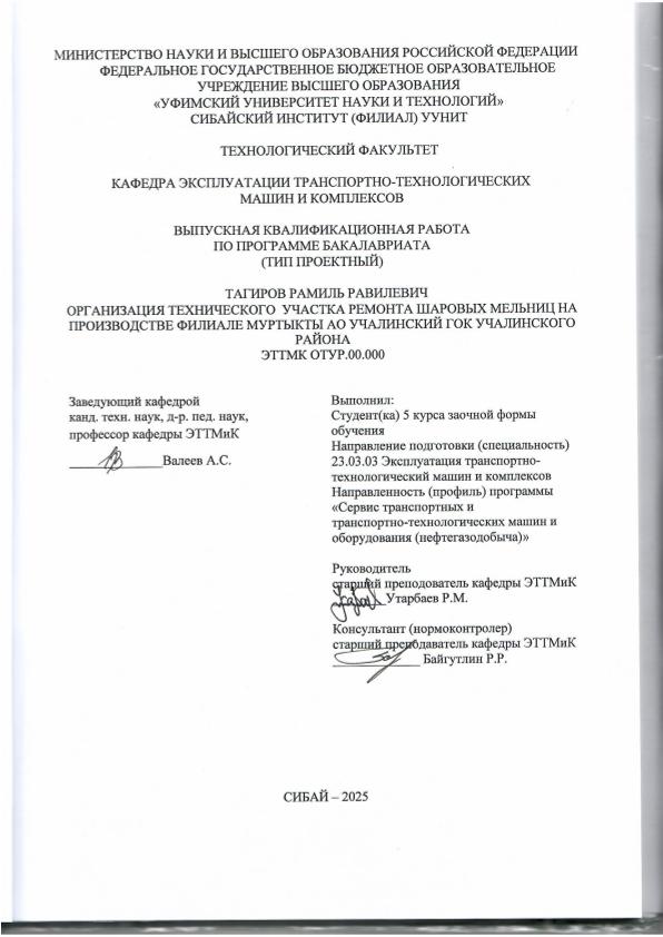 Эксплуатация транспортно-технологических машин и комплексов; бакалавриат; ВКР; организация; обслуживания; оборудования