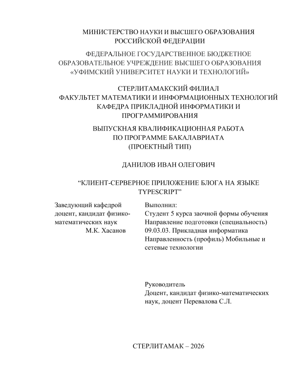 Уфимский университет науки и технологий. Стерлитамакский филиал. Факультет математики и информационных технологий. Кафедра прикладной информатики и программирования