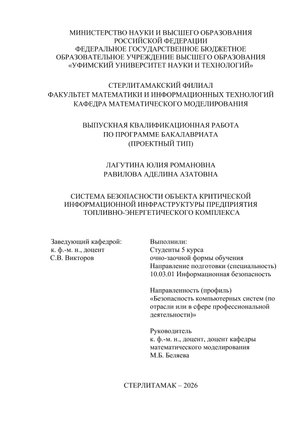 Вычислительная техника; бакалавриат; ВКР проектного типа; информационная безопасность; топливно-энергетический комплекс