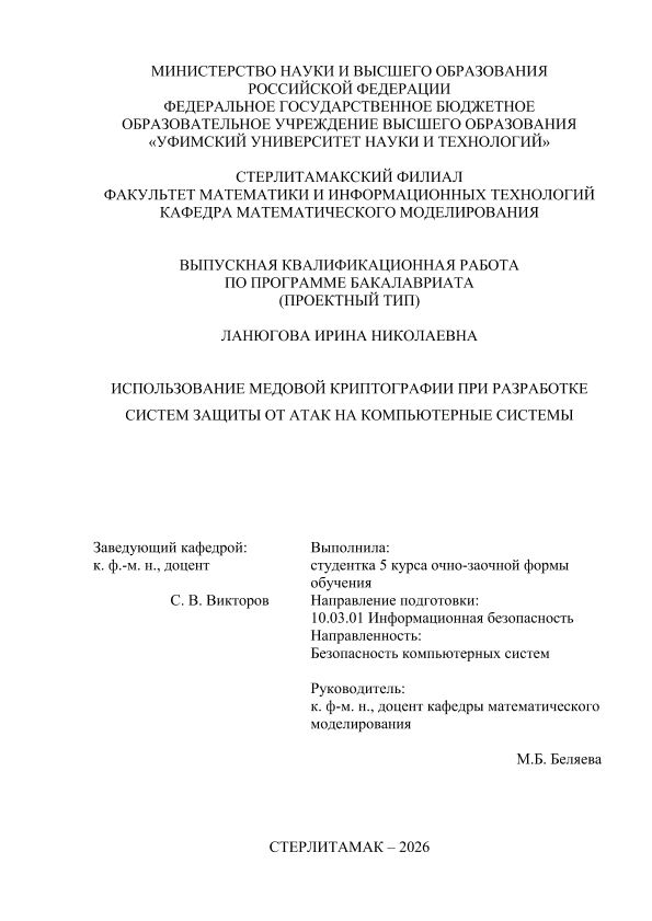 Вычислительная техника; бакалавриат; ВКР проектного типа; медовая криптография; информационная безопасность