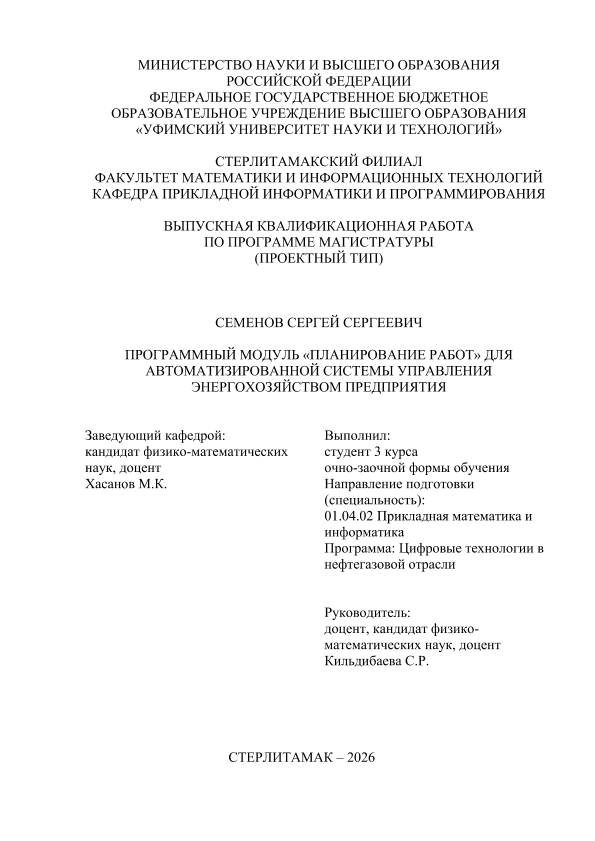 ВКР; магистратура; программный модуль; автоматизированная система управления энергохозяйством предприятия