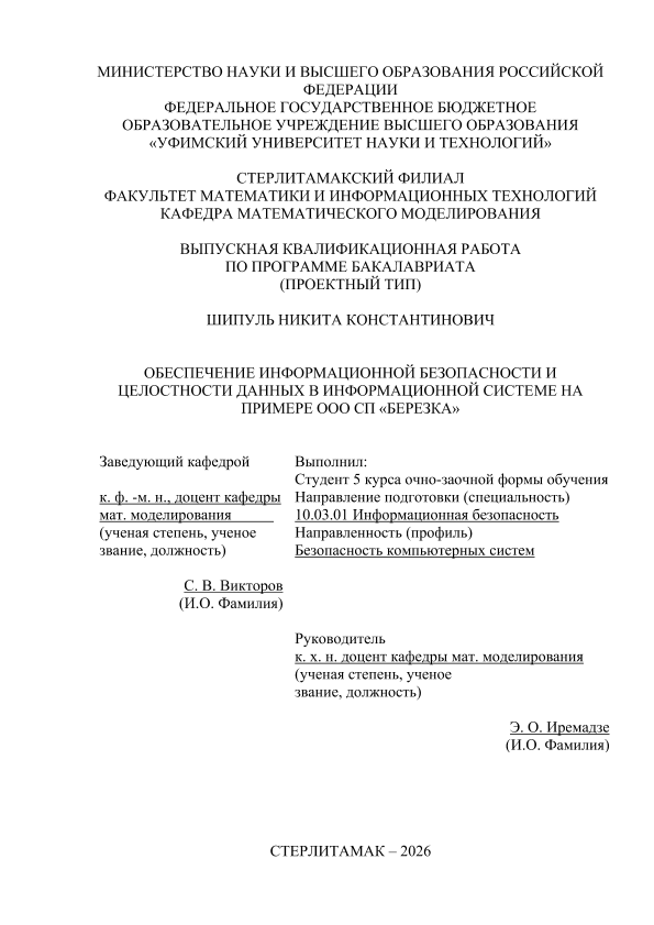 Вычислительная техника; бакалавриат; ВКР проектного типа; инофрмационная безопасность; информационная система