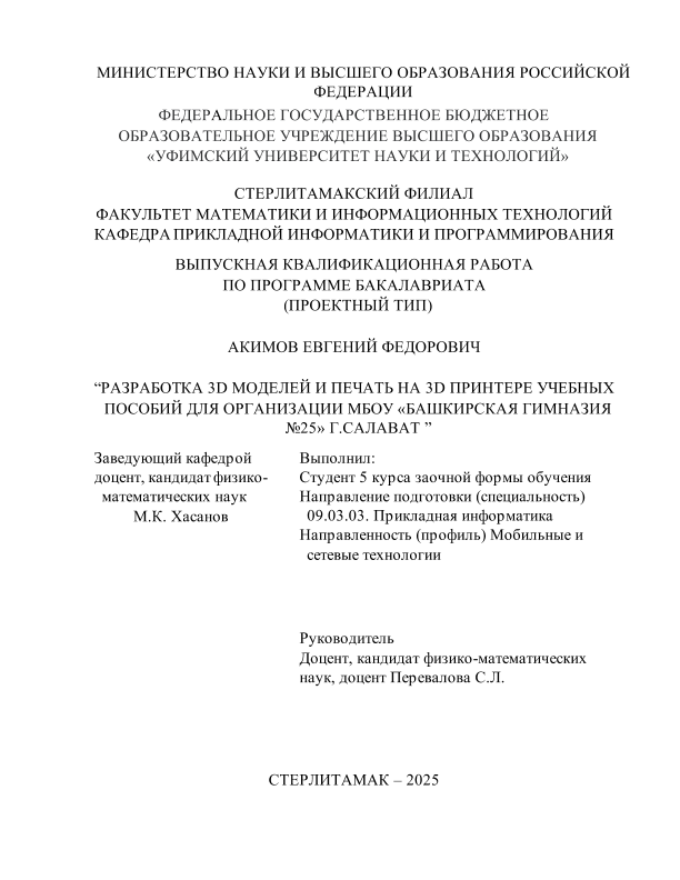 бакалавриат; ВКР проектного типа; 3D модели