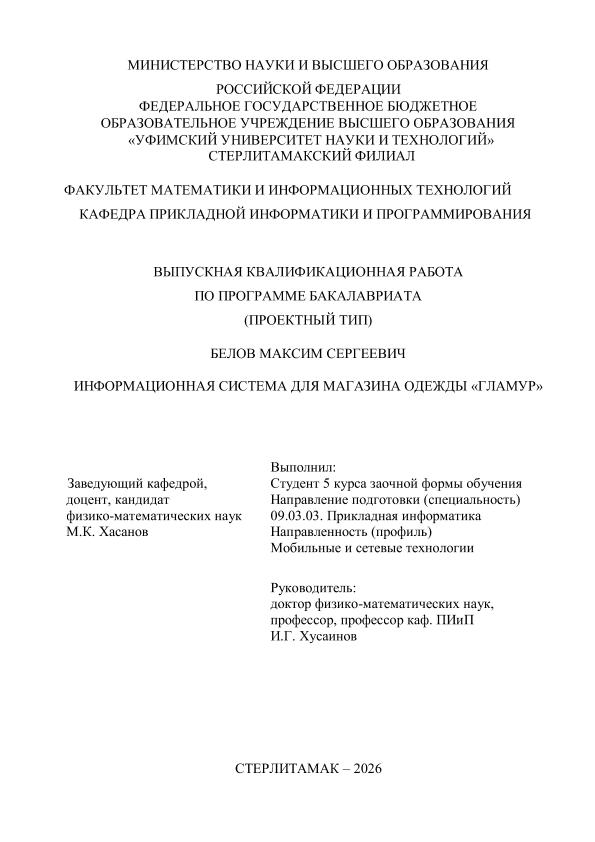 бакалавриат; ВКР проектного типа; информационная система