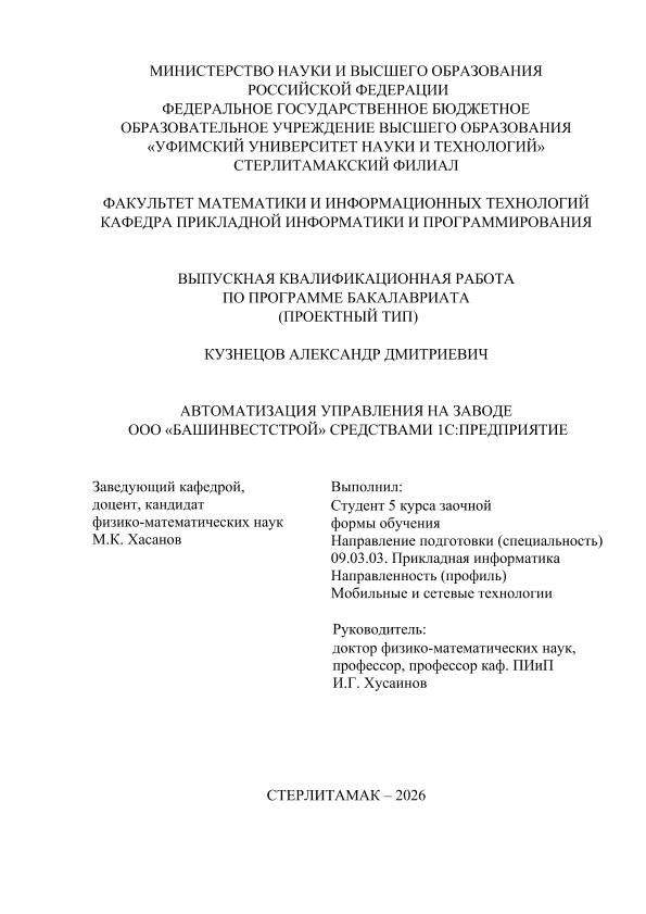 бакалавриат; ВКР проектного типа; автоматизация управления