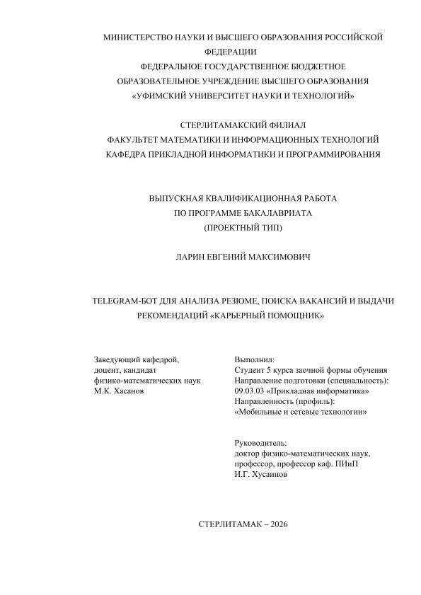 бакалавриат; ВКР проектного типа; Telegram-бот