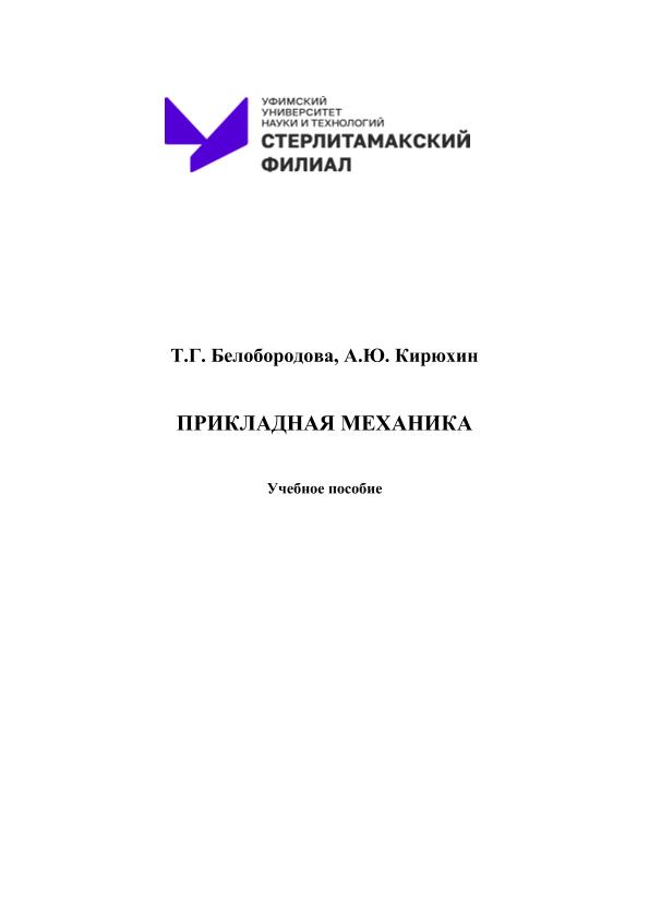 Белобородова, Т. Г. ПРИКЛАДНАЯ МЕХАНИКА: учебное пособие для студентов, обучающихся по направлению подготовки: «18.03.01 – Химическая технология», программа «Химическая технология синтетических веществ» [Электронный ресурс] / автор Т. Г. Белобородова, А. Ю. Кирюхин; ответственный редактор С. М. Анохин. — Стерлитамак: Стерлитамакский филиал УУНиТ, 2025. — 116 с. — Электрон. версия печ. публикации. — Доступ возможен через Электронную библиотеку УУНиТ. — <URL:https://elib.bashedu.ru/dl/corp/Beloborodova_Kiruhin_Prikladn_meh_up_2025.pdf>.