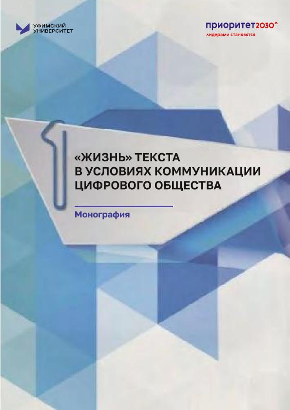«Жизнь» текста в условиях коммуникации цифрового общества: монография / Уфимский университет науки и технологий; Н.П. Пешкова, Д.Р. Гилязова, Я.А. Давлетова [и др.]. — Уфа: Уфимский университет, 2025. — Электрон. версия печ. публикации. — Доступ возможен через Электронную библиотеку УУНИТ. — <URL:https://elib.bashedu.ru/dl/local/PeshkovaNP_i dr_Gizn neksta v uslov.kommunikacii cifrov.obshestva_mon_2025.pdf>. — Текст: электронный