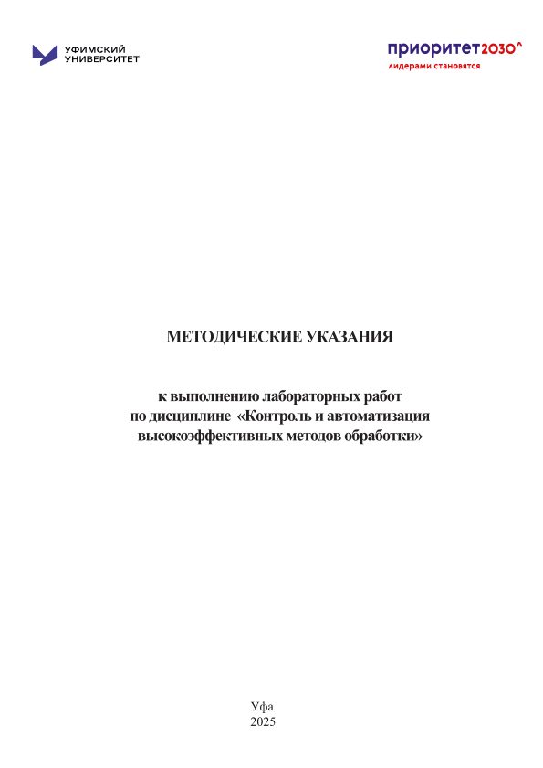 Методические указания к выполнению лабораторных работ по дисциплине "Контроль и автоматизация высокоэффективных методов обработки" / Уфимский университет науки и технологий; авторы- составители Р.К. Вафин, Р.Д. Агзамов, А.А. Николаев, А.В. Асылбаев. — Уфа: Уфимский университет, 2025. — Электрон. версия печ. публикации. — Доступ возможен через Электронную библиотеку УУНИТ. — <URL:https://elib.bashedu.ru/dl/read/VafinRK_i dr. avt-sost._Met.uk.k vipoln.lab.rab.po discipl. Kontr.i avtomat. visokoeffekt.metod.obrabotki_2025.pdf>. — Текст: электронный