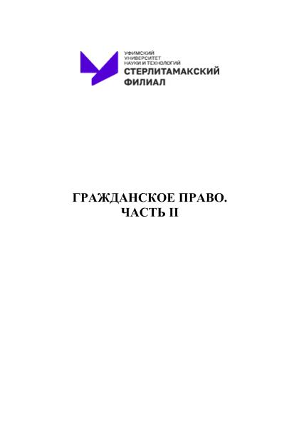 Гражданское право. Часть II: учебное пособие для студентов юридического факультета [электронный ресурс] / Сост. Т. А. Ахметова; ответств. редактор Р. М. Усманова. — Стерлитамак: Издательство СФ УУНиТ, 2025. — 198 с. — Электрон. версия печ. публикации. — Доступ возможен через Электронную библиотеку УУНиТ. — <URL:https://elib.bashedu.ru/dl/local/Grazhd_prav_Ch2_up_2025.pdf>.